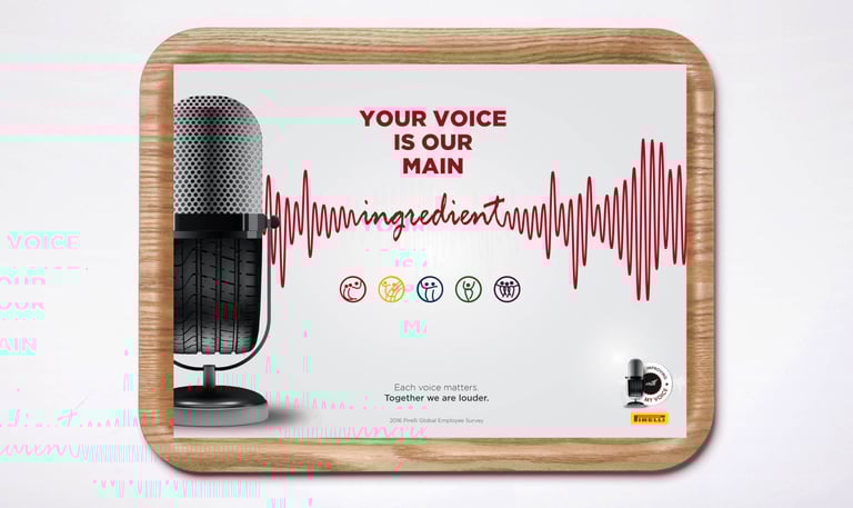 A campanha "My Voice" foi criada com o objetivo de incentivar a participação dos colaboradores na pesquisa de clima organizacional, promovendo um ambiente onde cada voz é ouvida e valorizada. Para isso, realizamos uma série de reuniões com as equipes da Pirelli, buscando entender profundamente a pesquisa e seus desdobramentos.
